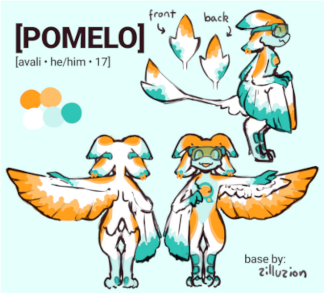 Pomelo the Avali!Pomelo is a relatively skilled pilot, who seeks adventure and to have a good time with his friends.Favorite Food: Sour Lemonade